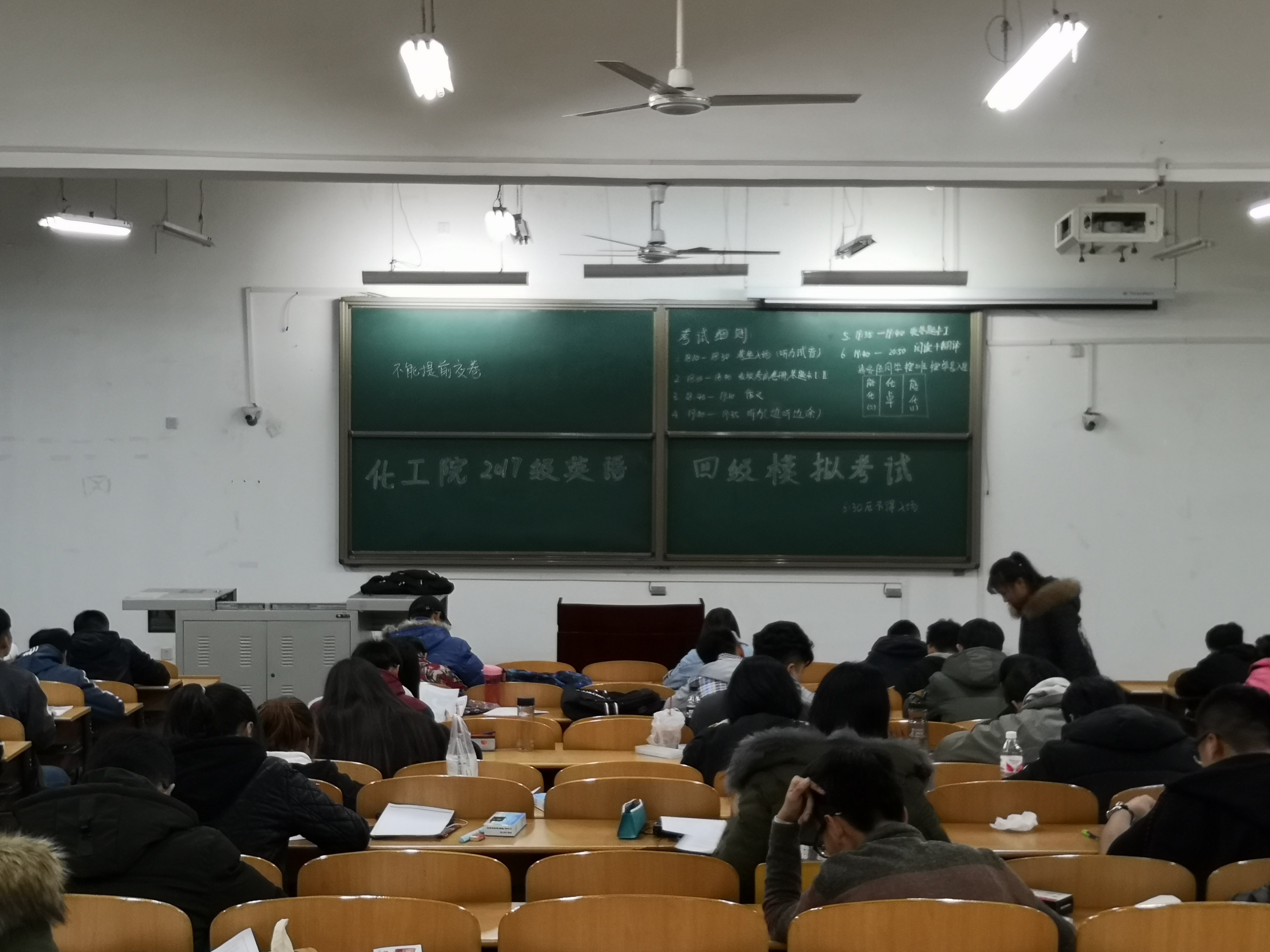 12月4日晚,化學化工學院在新校區B區教學樓舉辦學院大學英語四級模擬考試。學院2017級全體學生和2018級部分學生參加了此次模擬考試。2017級輔導員楊夢琳、學院學生會學習部學生干部擔任監考。