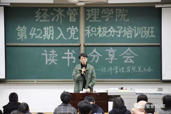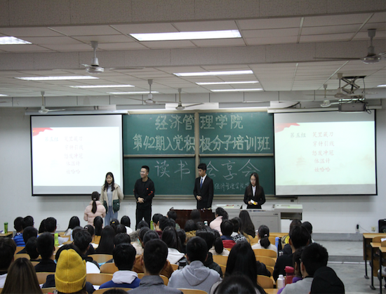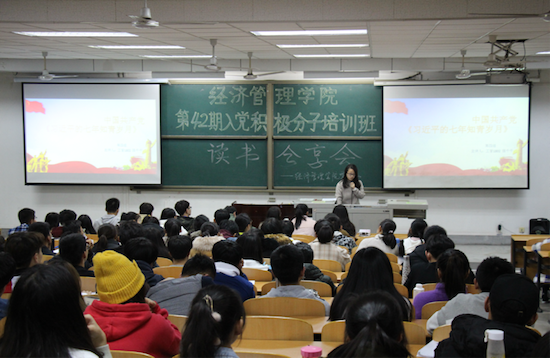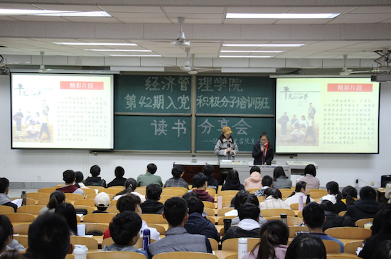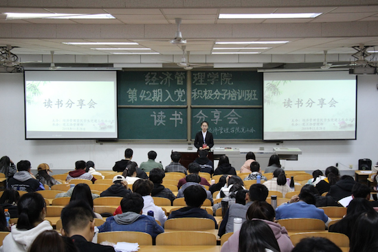 為深入學習黨的十九大精神,學好黨的知識,提高黨性修養,同時豐富課余生活,陶冶情操,擴展知識面,增加文化素養,提高個人修養,11月28-29日晚,由經濟管理學院黨委主辦,學生黨建工作辦公室承辦的“書香校園建設”系列活動之“讀書分享會”于鄠邑校區教學A區139教室順利舉行,黨工辦學生干部、入黨積極分子200余人參加。
