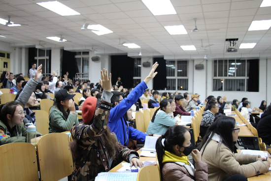 隨后的知識競賽環節,分為搶答題、填空題、簡答題三個部分。整個競賽過程中氣氛緊張,異常激烈。在搶答題環節,各小組不甘示弱,分秒必爭,為了搶得題目的回答權都拼盡了全力。回答問題時精神飽滿,認真作答,為自己的隊伍奮力拼搏,展現了較強的文化素養和豐富的閱讀量。