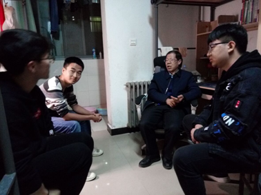 11月25日、11月26日晚,電子工程學院黨委何鋮書記、院長仵杰教授在輔導員陪同下深入學生宿舍,了解輔導員住宿情況,學生的學習、生活等情況。