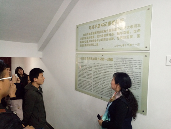 西遷館展現了上世紀五十年代交大人從繁華的上海來到古城西安,扎根黃土地,開拓奮進,為使交通大學成為屹立于祖國西部的一顆璀璨明珠而艱苦創業的拼搏歷程。西遷館展出的工整美觀的手寫講義、清秀大方的英文手稿讓學生黨員們感嘆不已,不僅為先輩們克服萬難的精神感到震撼,也暗下決心要把這種不屈不撓的精神用在自己的學習和生活中。1955-1959年,從西北參觀團到大西北選址,從全部西遷到主體西遷,西遷的故事令學生黨員們深切感受到一代“西遷人”飽含著愛國奉獻精神,將個人前途與國家命運緊密相連,60多年來篳路藍縷建功立業,用青春和汗水在三秦大地上創建起一所聞名于世的高等學府,為祖國西部的社會進步和經濟發展做出了不可磨滅的貢獻,更熔鑄出“胸懷大局、無私奉獻、弘揚傳統、艱苦創業”的“西遷精神”。