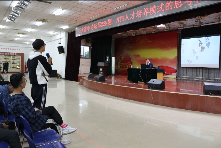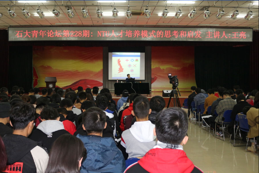 11月6日晚7點,由校團委主辦,電子工程學院承辦的第228期石大青年論壇:NTU人才培養模式的思考和啟發——兼談新英兩國訪游見聞,在騰輝大學生活動中心順利舉辦。此次論壇主講人為西安石油大學黨政辦公室副主任、鄠邑校區管理辦公室副主任王亮老師。