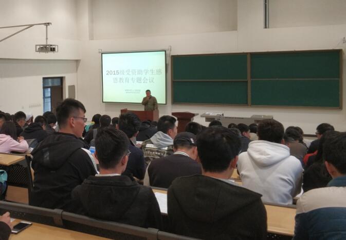 2018年11月5日下午,地球科學與工程學院召開2015級學生感恩教育主題大會。會議由輔導員邱嶺老師主持,2015級全體受資助學生參加會議。