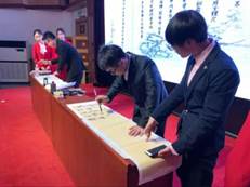 比賽現場,研究生社團“星原詩社”及“翰墨書社”也帶了精彩節目進行分享。星原詩社副社長康凱等演繹了詩朗誦“厲害了我的國”,激昂振奮;翰墨書社李睿哲等現場揮毫潑墨,伴著朗誦,一幅幅書法作品讓我們領略了“聽風落筆書畫卷,聞歌踏行彩墨宜,潤澤拂柳漾碧波,書會揮毫展藝活”的精妙。