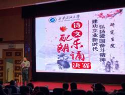 此次朗誦比賽由研究生院黨委主辦,研究生院團委、研究生會協辦,以弘揚愛國奮斗精神、弘揚社會主義核心價值觀、謳歌改革開放四十年偉大成就為主題,是貫徹落實學校黨委“弘揚愛國奮斗精神 建功立業新時代”的系列活動之一,為進一步增強研究生愛國熱情,激發研究生刻苦學習、投身建設的愛國情懷,為研究生院進一步加強書香校園建設工作、進一步緊密圍繞學校中心工作、助力學校事業發展奠定良好基礎。