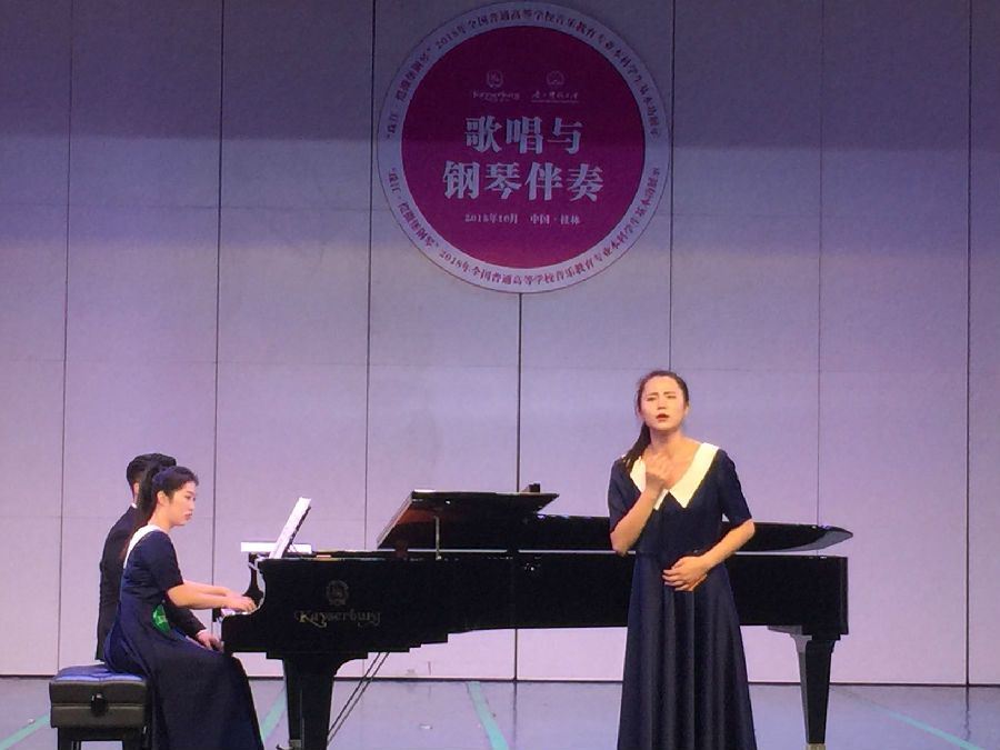 10月22日—26日由教育部主辦的全國普通高等學校音樂教育專業大學生基本功展示活動在廣西師范大學成功舉辦。來自全國60所高校180名參賽選手參加了微課展示、樂器演奏、自彈自唱、歌唱與伴奏、合唱指揮等項目展示。經過幾天的激烈角逐,最終我校音樂系的魚紫薇同學獲得個人全能三等獎,微課展示單項獎。此項基本功展示活動每兩年一次,是教育部對高校音樂教育專業辦學成果的檢驗。