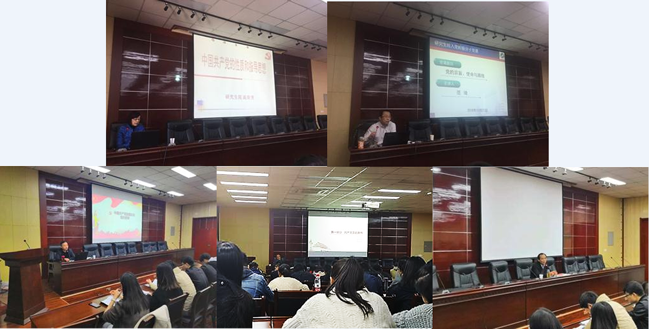 紀委監察處處長趙承勝、材料與科學工程學院黨委書記趙健、組織部副部長蔡強,研究生院黨委書記高榮芳及副書記范琦,分別就黨的性質和指導思想、黨的宗旨和使命、黨員條件和入黨程序、黨的組織原則、黨員權利和義務等內容進行了集中講授。