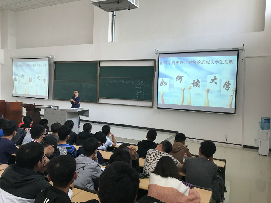 接著李老師以“如何讀大學”為題,為同學們一一列舉了當前大學生在學習、生活、心理、人際交往等方面存在的各種不適應現象,分析了產生“不適應”問題的原因,并分享了調試個人“不適應”問題的基本策略和建議。在此基礎上,李老師提出四年大學時光需要做好的三件事情:“學會學習、學會做人、學會做事”。他建議大一新生要自覺做好學習規劃和職業生涯規劃,樹立明確的學習目標,保持充足的學習動力,培養自己的專業興趣,積極參加各類創新創業、課外科技和文體活動,樹立正確的婚戀觀,常懷感恩之心,積極參加各類公益活動,誠信做人、踏實做事,爭做德智體美全面發展的新時代合格大學生。