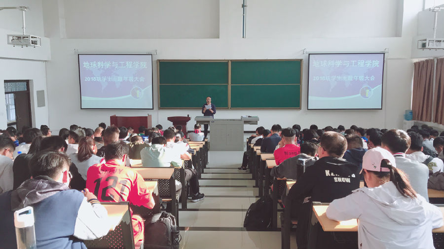 10月11日下午16:00,地球科學與工程學院在鄠邑校區石工地科樓115教室召開2018級新生第一次主題年級大會。輔導員李化杰老師主持會議,學院2018級全體同學參加本次大會。