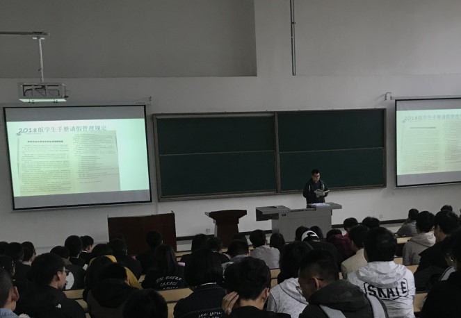 會上,邱老師首先對學生進行了安全意識教育,帶領學生們共同學習了《西安石油大學本科學生請銷假制度》,明確了日常穩定安全管理相關制度要求的重要性,要求同學們嚴格遵守節假日去向統計、周末晚點名、上課考勤等制度。