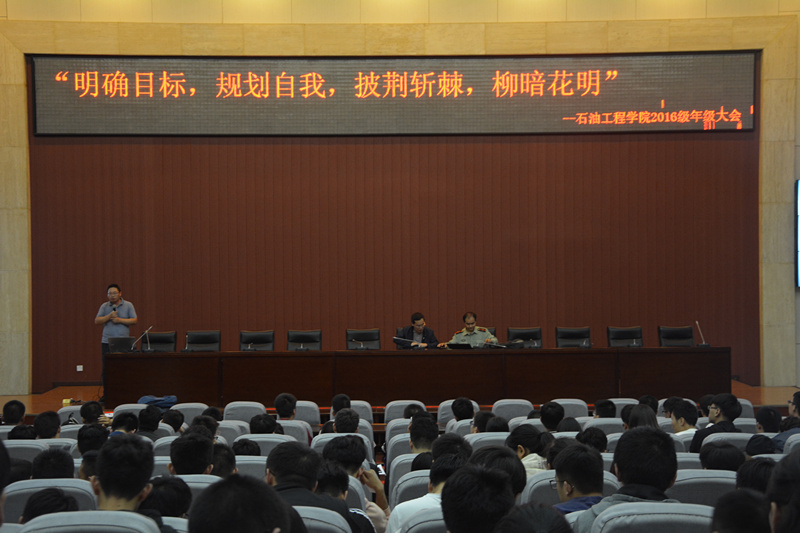 9月19日晚,石油工程學院2016級年級大會在弘石報告廳舉行。本次大會的主題為“明確目標,規劃自我,披荊斬棘,柳暗花明”。石油工程學院黨委副書記張建高、學生管理辦公室主任孫會珠、2016級輔導員老師嚴維博及2016級全體同學參與本次會議。