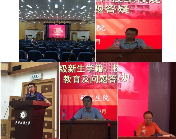 為進一步落實2018級碩士研究生入學教育工作,提高研究生日常學習生活質量,在學生工作部的指導下,9月12日至9月14日,在黨委學工部的指導下,研究生院聯合學生心理成長指導中心、保衛處、計劃財務處、校醫院等,在雁塔校區會議中心學術報告廳先后開展了法制安全教育、消防安全教育、新生學籍校紀校規教育及問題答疑、衛生防疫教育、心理健康教育等一系列入學教育專題報告。