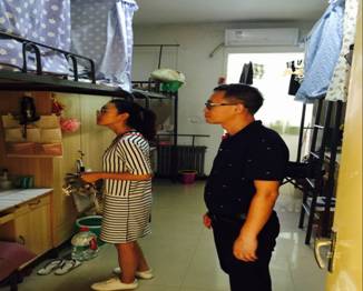 9月3日下午2點,外國語學院黨委書記廖敏帶領各年級輔導員,對新學期學生宿舍進行衛生安全大檢查。