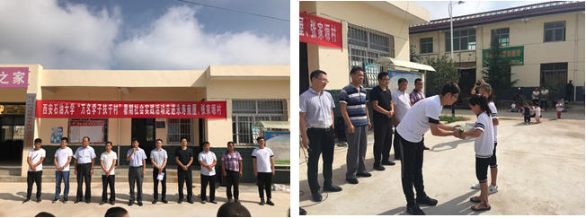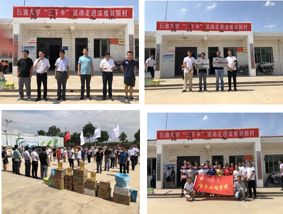 活動當天,在永壽縣縣委常委、統戰部部長郭傳海同志、團縣委書記張磊同志及相關縣委領導、張家塬小學校領導、我校團委馬琦老師、駐永壽縣團委掛職干部潘德潤老師、校團委、電子工程學院、理學院學生代表的共同參與下,于馬坊鎮張家塬村舉行了西安石油大學“萬名學子扶千村”大學生暑期社會實踐脫貧攻堅活動啟動儀式,并由黃景鵬老師向留守兒童捐贈了圖書等學習用品。