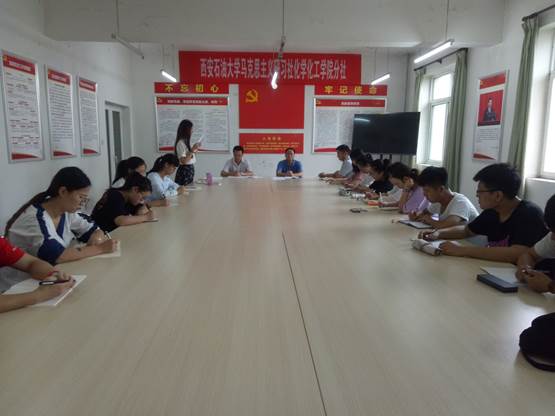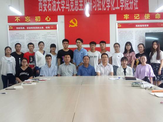 與會人員在董丙劍老師的帶領下重溫入黨誓詞。會上,李心宇同學宣讀了校馬克思主義研習社化學化工學院分社章程,社員代表曹成珺做代表發言。