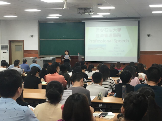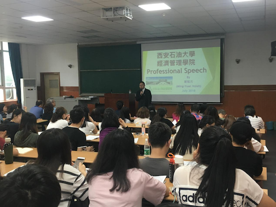 2018年7月4日下午3點,應西安石油大學國際交流與合作處和經濟管理學院邀請,來自臺灣臺中教育大學的謝銘元教授在雁塔校區二號教學樓東階202教室為經濟管理學院廣大師生作題為《區域經濟整合對全球經濟發展的影響》的講座。經濟管理學院近100名師生參加講座。
