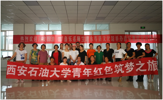 為全面貫徹落實習近平總書記回信精神,在校工會聯系下音樂系與永壽縣文化館開展結對子活動,引導青年扎根大地,了解國情、民情,助力教育扶貧,實現文化惠民。6月29日~7月2日為永壽縣文化館開展舞蹈、音樂培訓活動。何云老師、張萌萌同學精心準備了適應不同年齡段人群的藏舞、現代舞和拉丁舞;甘璐瑤等同學為永壽縣聲樂愛好者從呼吸、發聲、演唱技巧和樂理知識等方面進行指導。本次活動有近150名文藝愛好者參與,充分彰顯了我系的專業優勢,提升師生的實踐能力,發揮音樂育人的作用,將藝術實踐與教育扶貧相結合,促進了永壽縣基層文藝隊伍建設。