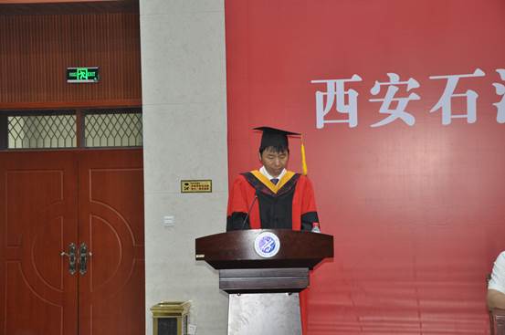 學位授予儀式在莊嚴的國歌聲中開幕。侯琦書記代表學院在儀式上發表了熱情洋溢的講話,他首先代表學院向圓滿完成學業并獲得學士學位的全體畢業生表示熱烈的祝賀!侯琦書記說,四年時光,學院見證了每一位同學的成長與收獲,同時,同學們也見證了學校獲批博士學位授予單位、鄠邑校區東大門的建成啟用、新操場的投入運行等學校發展時刻。新時代中國對同學們而言既是挑戰,也是施展才華的好機會。他對畢業生提出了四點希望和囑托:一是繼續弘揚鐵人精神和石油精神,充分發揮自身優勢,以青年人應有的責任和擔當讓青春綻放光彩。二是堅持對卓越的追求,以時不我待只爭朝夕的踏實精神實現人生目標。三是激活正能量擁有好心態,面對困難挫折時擁有好心態是轉變角色、適應社會的關鍵。四是筑夢人生,精彩一生。要敢于有夢、善于筑夢、勤于追夢,實現自己的人生價值,為祖國、為社會添磚加瓦,為母校、為父母增光添彩。