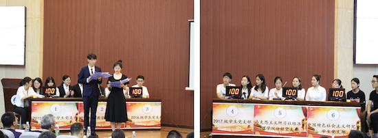 本次比賽由2016級學生干部李鑫浩、陳悅同志主持,共分為必答題、搶答題和風險題三個環節。比賽中,六組由各黨支部選拔出的優秀選手在答題環節展現出非凡的實力,尤其在搶答環節,更是賽出了大學生黨員應有的風采。最終2015級商管學生黨支部獲得本次比賽一等獎,并由閆大維書記為他們頒獎。