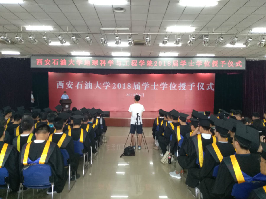 6月26日下午16:00,地球科學與工程學院在鄠邑校區騰輝大學生活動中心舉行2018屆畢業生學士學位授予儀式,學院黨委書記馬行天、院長王鳳琴、副院長李輝峰、宋立軍以及導師代表李艷霞、趙軍龍、肖暉、李磊出席了儀式。儀式由副書記李慶本主持,300余名畢業生參加了學位授予儀式。