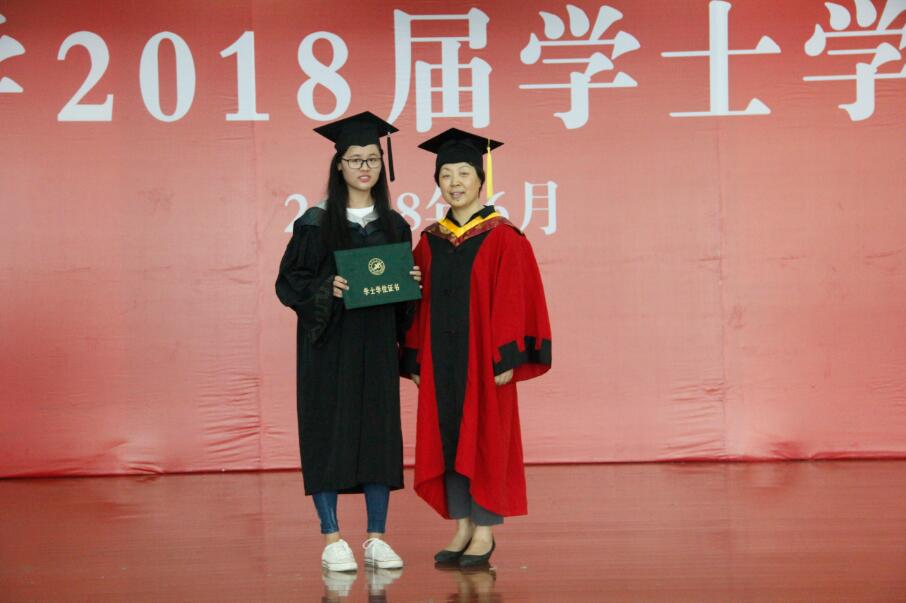 隨后,授位儀式正式開始,在歡快的音樂聲中,獲得學士學位的同學們一一上臺,由教授委員會各位導師授予學位,并合影留念。