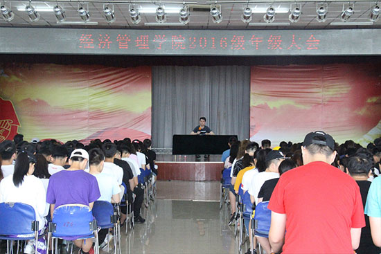 6月13日上午,經濟管理學院2016級年級大會在鄠邑校區騰輝大學生活動中心召開。輔導員武威老師主持,2016級600余名學生參加。