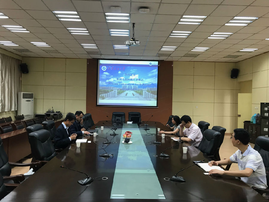Vamegh Rasouli主任對我校的熱情接待表示感謝,表示希望促進兩校之間的合作,他簡要從地理位置、師生規模、學科特色、石油特色實驗室等方面介紹了北達克他大學概況,強調學校的工程學科優勢,與我校具有良好合作前景。