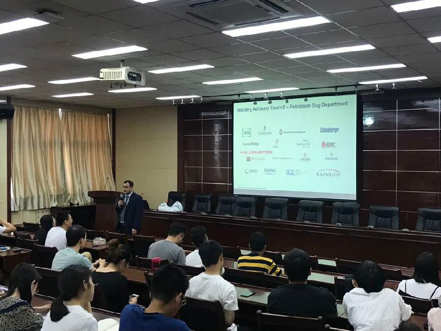 會后,Vamegh Rasouli博士在西階第五會議室為我校師生做了題為《Unconventional Shale Plays Exploration, Development and Production: Current State in the U.S. and Technology Transfer to China》(中文名稱是“頁巖油氣區的勘探、開發與生產:美國現狀與向中國技術轉讓”)的學術報告。