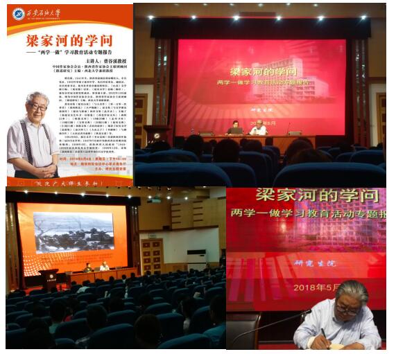 ——舉辦報告。5月4日下午,研究生院黨委邀請省作協主席團顧問曹谷溪先生在雁塔校區為研究生院師生作了題為《梁家河的學問》的專題報告。研究生院黨委領導、全體學工干部和研究生代表300余人聆聽了報告。報告會上,曹老通過回顧習近平總書記在陜北黃土高原、在梁家河大隊創辦沼氣的知青歲月,闡述了習近平總書記青年時代矢志不渝的理想追求、愛國為民的家國情懷、勤奮好學的進取精神、求真務實的良好作風和吃苦耐勞的優秀品質。本次報告會旨在讓研究生牢記習近平總書記在北京大學師生座談會上愛國、勵志、求真、力行的諄諄囑托,反響熱烈。