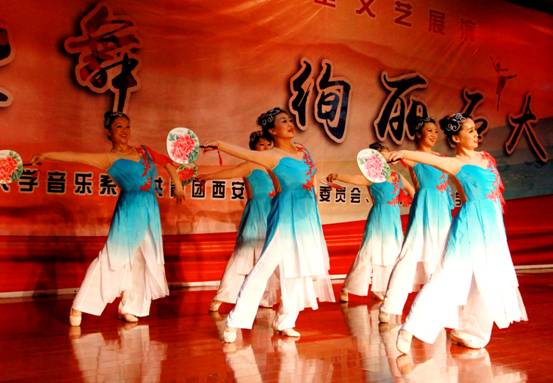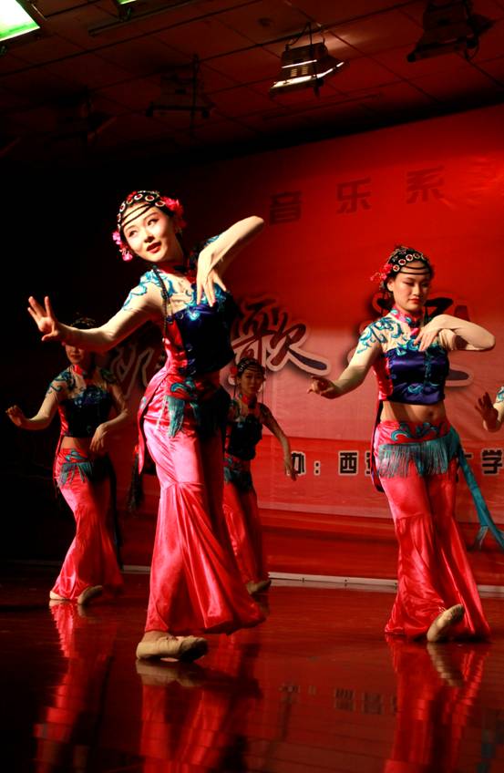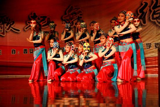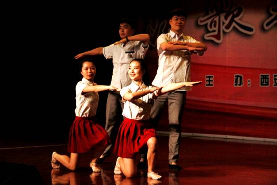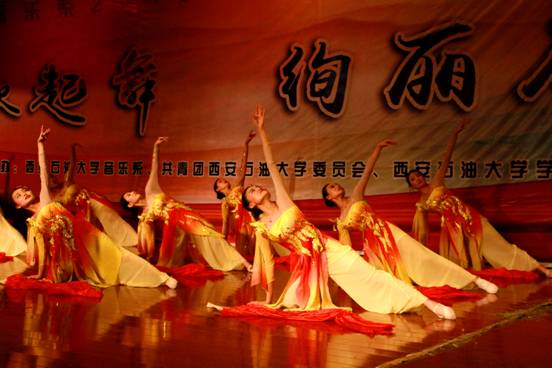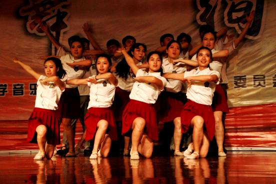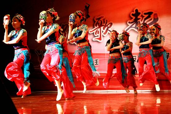 本場晚會由我系宋淼老師總策劃,全程指導(dǎo)學(xué)生排演節(jié)目并制定演出方案。教師與學(xué)生攜手演繹,李陽、田立老師演唱歌曲《我愛你中國》為本場晚會拉開了序幕,校工會教師舞蹈隊的《C哩C哩、茉莉花》將現(xiàn)代及古典舞蹈相結(jié)合,展現(xiàn)了我校熱愛舞蹈的教工風(fēng)采;現(xiàn)代舞蹈、薩克斯重奏《雨中曲》、影視歌曲聯(lián)唱等曲目贏得了觀眾的陣陣掌聲;周偉老師指導(dǎo)的音樂系合唱團(tuán)演唱的大合唱《長恨歌—仙樂風(fēng)飄處處聞》、《十送紅軍》大氣磅礴,;民樂合奏、女生小合唱、傣族舞和獨(dú)唱更是體現(xiàn)了我系學(xué)生專業(yè)水準(zhǔn);由我系舞蹈教師何云老師自編自導(dǎo)的舞蹈《京劇臉譜》,舞蹈動作大氣到位、服裝道具美輪美奐、編舞專業(yè)化程度高,讓人耳目一新,震撼全場;結(jié)尾舞《輝煌明天》將晚會推向了高潮,晚會在全場同學(xué)的掌聲中圓滿落下帷幕。