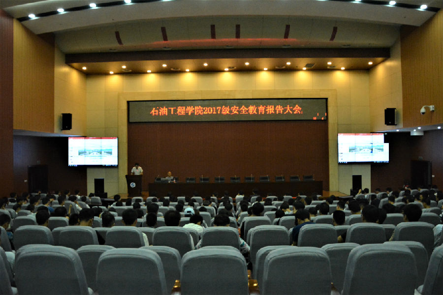 為增強學生安全意識,保證學生在校安全。5月30日晚七點,石油工程學院在我校鄠邑校區(qū)弘石報告廳舉辦了“石油工程學院2017級安全教育報告大會”。特邀我校保衛(wèi)處副處長張永華老師為大家講解安全知識,石油工程學院2017級輔導員孫浩哲老師及2017級全體學生參加了本次報告大會。