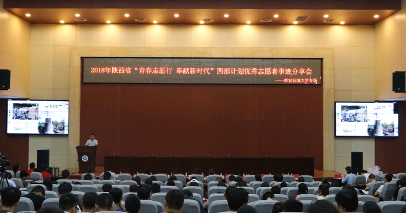 5月22日下午,2018年陜西省西部計劃優(yōu)秀志愿者事跡分享會在我校鄠邑校區(qū)圖書館弘石報告廳舉行。團西藏區(qū)委統(tǒng)戰(zhàn)聯(lián)絡(luò)部干部、西藏宣講團領(lǐng)隊李捷,校學生工作部(處)部長、就業(yè)指導中心主任王宏衛(wèi),校團委書記賈莉娜,各院系畢業(yè)班輔導員,與現(xiàn)場400多名學生共同聆聽了分享團成員的青春故事。