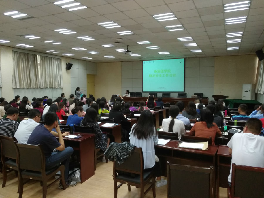 要求大學英語教師和專業(yè)課教師要在日常教學工作中,多關心學生的學習和生活,了解掌握本班學生的具體情況,做到心中有數(shù),如發(fā)現(xiàn)異常情況可直接上報學院。其次充分肯定了外國語學院良好的學生工作氛圍,希望全體教職工齊心協(xié)力抓好穩(wěn)定安全工作。
