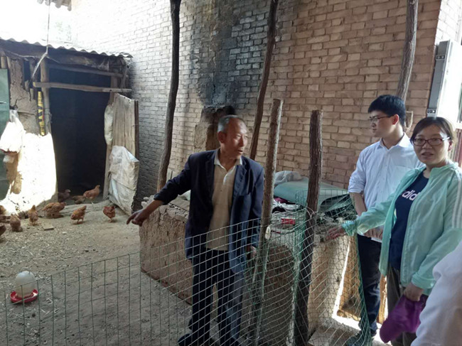 在幫扶對象楊民民家,袁書記一行查看了學院資助建設的雞棚、牛和新購買的雞苗,詢問養(yǎng)雞養(yǎng)牛飼料準備及預計生產情況,并鼓勵他們積極開展養(yǎng)殖,通過學院幫扶和自己努力,提高經濟收入,改善家庭生活。