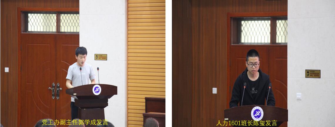 接著,黨工辦副主任郭學成及人力資源管理專業(yè)的三位黨員發(fā)展對象,分別發(fā)表了自己對于黨的十九大新思想的體會與感悟;人力1601班長陳璽就學生干部如何做到砥礪奮進這一問題談了自己的幾點心得。