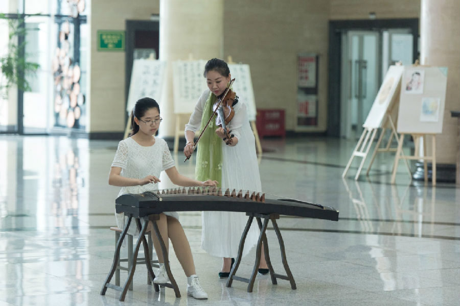 本次活動由鄠邑校區(qū)圖書館主辦,校學生會學習部協(xié)辦,共有100多名師生共同參與。活動形式為近年來頗受年輕人歡迎的“快閃”,有獨舞,音樂合奏《青花瓷》,詩朗誦《水調(diào)歌頭》《面朝大海春暖花開》《關(guān)雎》《沁園春.長沙》環(huán)節(jié)組成。我們用優(yōu)美的舞姿,悠揚的音樂及震撼的朗誦喚起大家對閱讀的興趣。同時讓師生們在愉悅的環(huán)境中體會閱讀的美好。