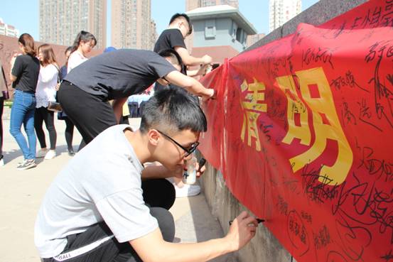 張偉副書記希望通過本次活動,同學(xué)們能夠獲得精神上的啟迪,靈魂上的震撼,在今后的學(xué)習(xí)中要傳承革命先烈的崇高精神和優(yōu)良作風(fēng),“不忘初心、牢記使命,無私奉獻,努力拼搏”。張偉副書記用一首詩概括了本次清明祭掃活動:出生入死為國清,翠柏蒼松伴英靈。不忘初心傳承在,牢記使命警鐘鳴。櫛風(fēng)沐雨家國興,砥礪奮進民族情。刺股懸梁勤為徑,乘風(fēng)破浪自鵬程。同學(xué)們受到極大鼓舞,紛紛表示希望能夠繼承革命先輩的優(yōu)良傳統(tǒng)。