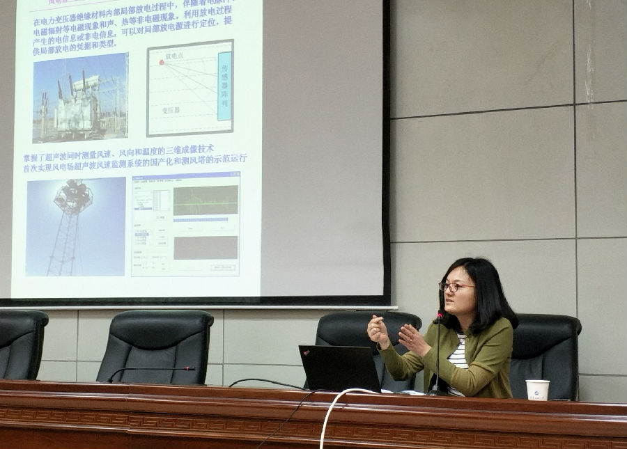 張超助理研究員首先介紹了中科院電工所工程電磁場(chǎng)及應(yīng)用技術(shù)研究部的概況,然后結(jié)合研究部所承擔(dān)的國(guó)家科技支撐項(xiàng)目、國(guó)家自然科學(xué)基金、國(guó)家電網(wǎng)公司合作項(xiàng)目,對(duì)研究部形成的幾大關(guān)鍵技術(shù)逐一進(jìn)行了專業(yè)講解,其中包括金屬磁記憶無(wú)損檢測(cè)技術(shù)、超聲波與電磁在線檢測(cè)技術(shù)、有源降噪技術(shù)、人體壓力分布成像技術(shù)、磁感應(yīng)成像和感應(yīng)式磁共振成像技術(shù)、地面金屬礦電磁探測(cè)技術(shù)、磁熱聲成像技術(shù)、陣列磁聲電阻率測(cè)井技術(shù)、基于磁聲電耦合的過(guò)套管電阻率測(cè)井技術(shù)、超級(jí)計(jì)算中心、磁諧振式無(wú)線電能傳輸技術(shù)等。