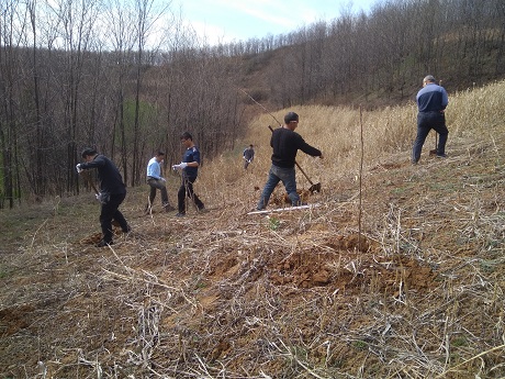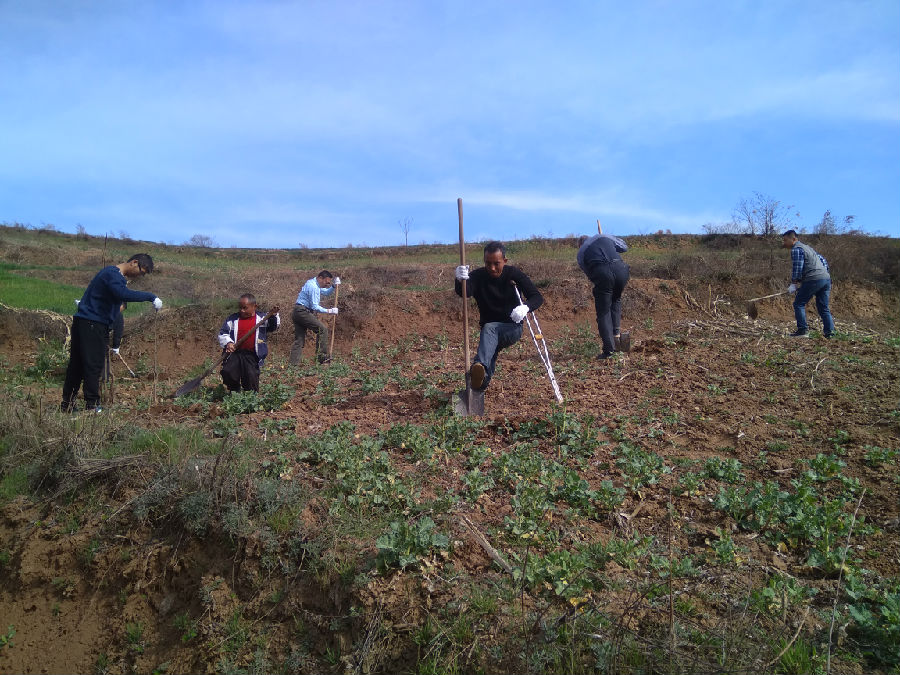 馬書記一行首先來到結(jié)對(duì)幫扶困難群眾王歲仔的家中,代表地學(xué)院向王歲仔送上了學(xué)院師生捐贈(zèng)的衣物兩包,并了解了他的近期生產(chǎn)生活情況。隨后,馬書記一行帶著提前購(gòu)買的核桃樹苗、鐵鍬等農(nóng)具,來到十多里外王歲仔位于老村的撂荒坡地,幫助王歲仔種植核桃樹苗。大家一起動(dòng)手,干勁十足,在兩畝多坡地上種植了一百余棵核桃樹苗。幫助王歲仔利用撂荒坡地種植經(jīng)濟(jì)林木是地學(xué)院精準(zhǔn)扶貧工作的一項(xiàng)具體舉措,為此,地學(xué)院提前聯(lián)系我校駐村扶貧干部董丙劍老師幫助購(gòu)買了核桃樹苗,考慮到王歲仔腿部有殘疾,無法從事體力勞動(dòng),學(xué)院此次專門組織教職工幫助其栽種樹苗。