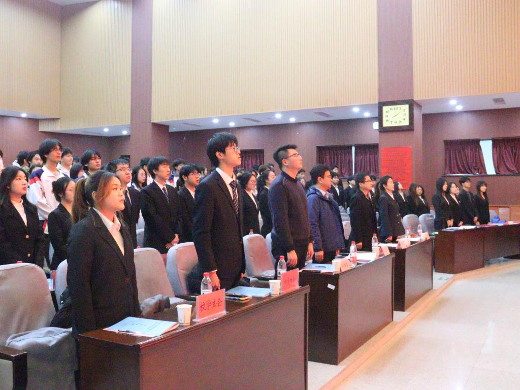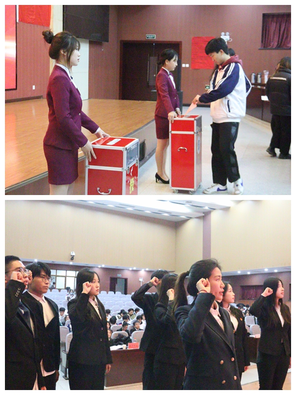 靳晨璐作《大會籌備工作報告》,并宣讀了學院第一屆團委屆內調整決議,聽取了學院團委、學生會上一年度工作報告,大會同時通過了大會選舉辦法和監票計票名單。隨后,通過無記名投票,差額選舉出新一屆學生委員會團成員。增補團委委員、新當選學生委員會委員面向團旗進行了莊嚴宣誓。