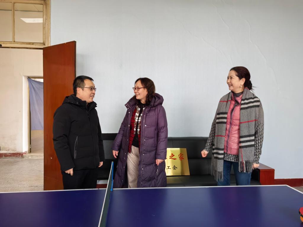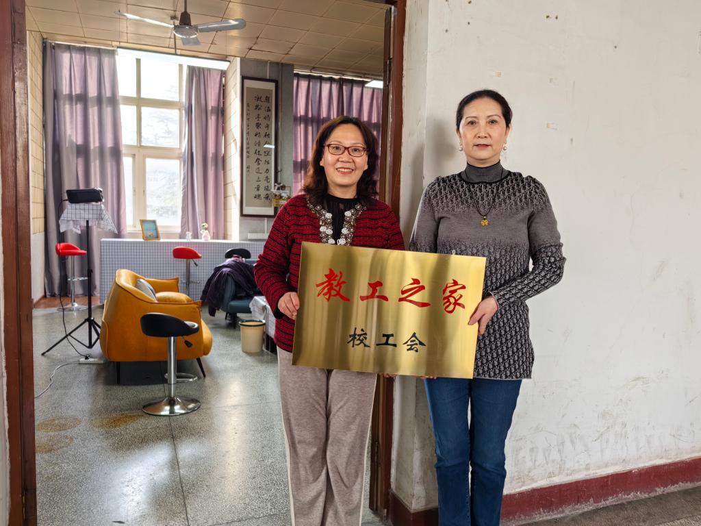 儀式上,袁玎與朱瑋共同為“教工之家”揭牌,校工會人員參觀并體驗了 “教工之家”的設施。
