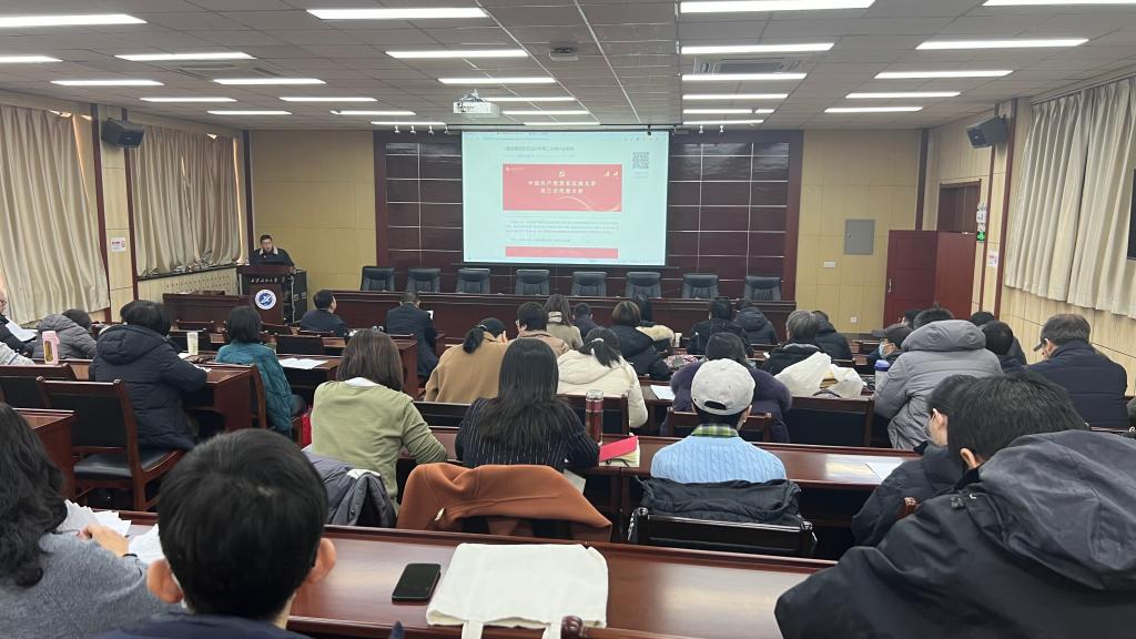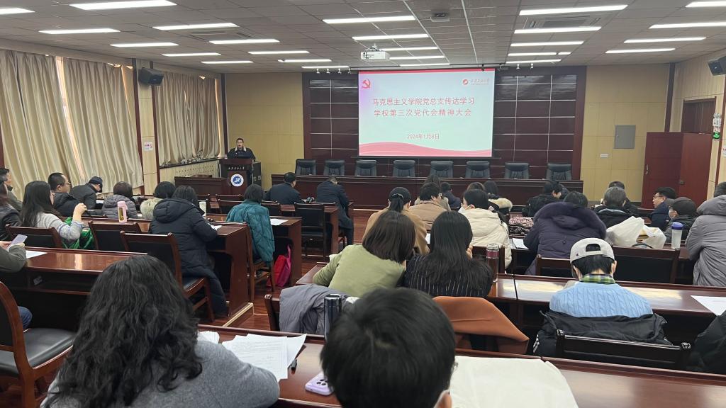 1月8日上午,馬克思主義學院黨總支在雁塔校區會議中心第五會議室召開傳達學習學校第三次黨代會精神大會。學院領導班子、全體教職工共50余人參加會議,會議由黨總支書記張偉主持。