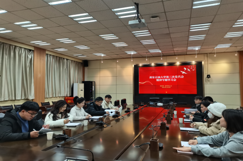 1月9日,校團委分別在鄠邑校區圖書館第二會議室和雁塔校區會議中心第二會議室召開學校第三次黨代會精神專題學習會,校團委全體成員,校院兩級學生會、研究生會主席團,第26屆研支團共50余人參加會議。會議由校團委書記何國強主持。