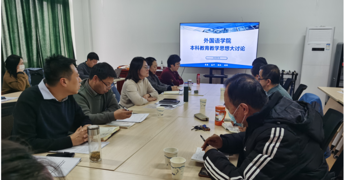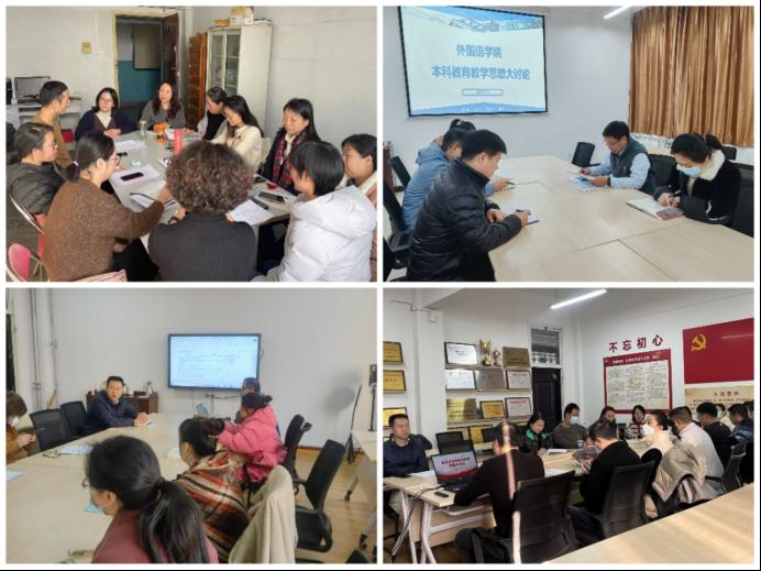 外國語學院黨政領導高度重視此次教育教學思想大討論工作,成立了外國語學院教育教學思想大討論領導小組,班子成員積極聯系各系(部)、辦公室,全程參與系(部)、辦公室開展的教育教學思想大討論。各系(部)、辦公室根據專業特點、課程特點、工作特點制定了詳細的計劃,全院教職工通過自主研學、集中研討、專題報告、案例宣傳、總結交流五個環節,促進思想碰撞,凝聚行動共識。