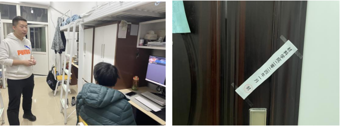 輔導員深入宿舍叮囑同學們離校前關好水電門窗、清理宿舍衛生、妥善保管私人物品,并在宿舍粘貼封條。