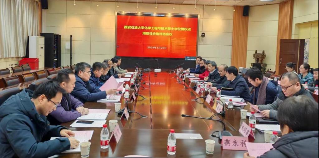 2024年1月26日,西安石油大學化學工程與技術碩士學位授權點周期性合格評估會議在雁塔校區西階第二會議室舉行。專家評審組由省內外本學科及企業知名專家組成,包括西安交通大學楊伯倫教授、南開大學程鵬教授、長安大學段磊教授、陜西科技大學劉玉婷教授、西安工程大學武占省教授、陜西化工研究院張勇教授、西北化工研究院丁琪教授。西安石油大學大學副校長楊戰社、研究生院院長高輝、高評中心副主任屈文濤等相關職能部門出席本次會議,化學化工學院班子成員及化學工程與技術學科師生代表等參加了本次會議。會議由學院黨委書記高小明主持。