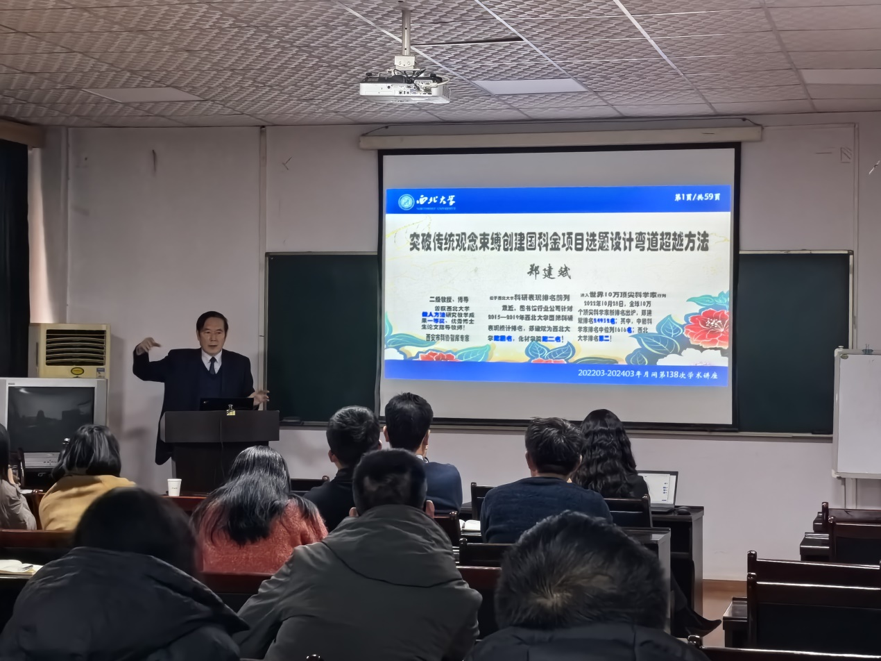 2024年2月25日下午,機械工程學院邀請西北大學鄭建斌教授在雁塔校區4號實驗樓418會議室為申報國家自然基金的教師作題為“突破傳統觀念束縛創建國家自科項目申請書的彎道超越撰寫方法”的報告。報告會由院長竇益華教授主持。