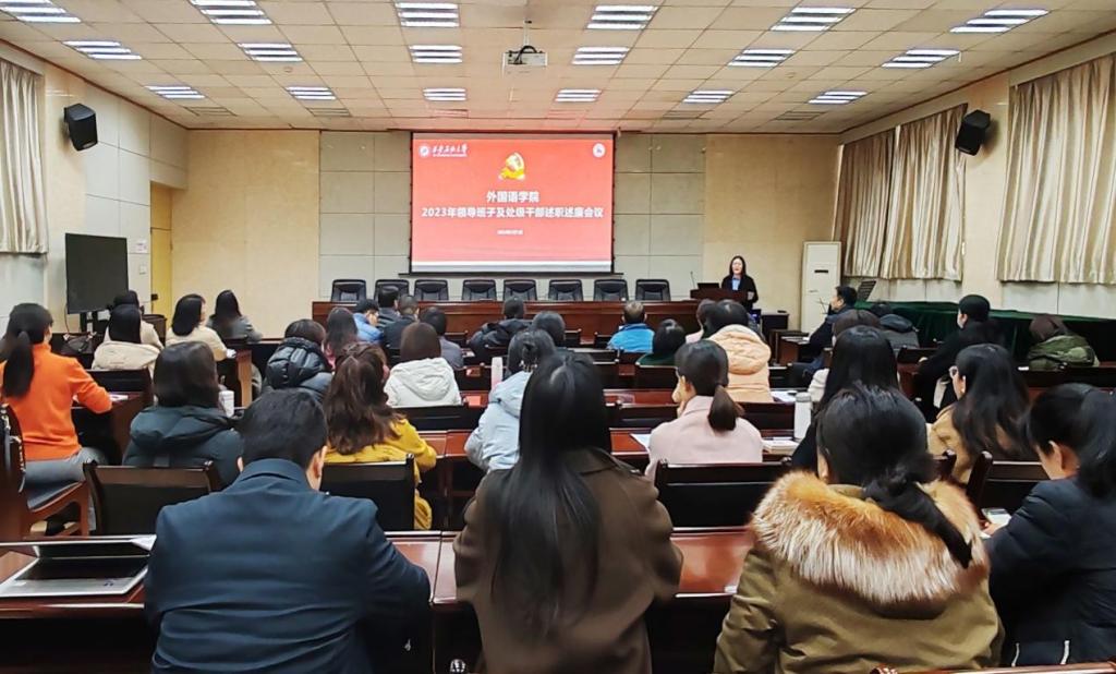 3月1日下午,外國語學院在雁塔校區會議中心第三會議室召開領導班子述職述廉暨全院教職工大會。學院黨政領導及全體教職工參加會議。會議由學院黨委書記田虹霞主持。
