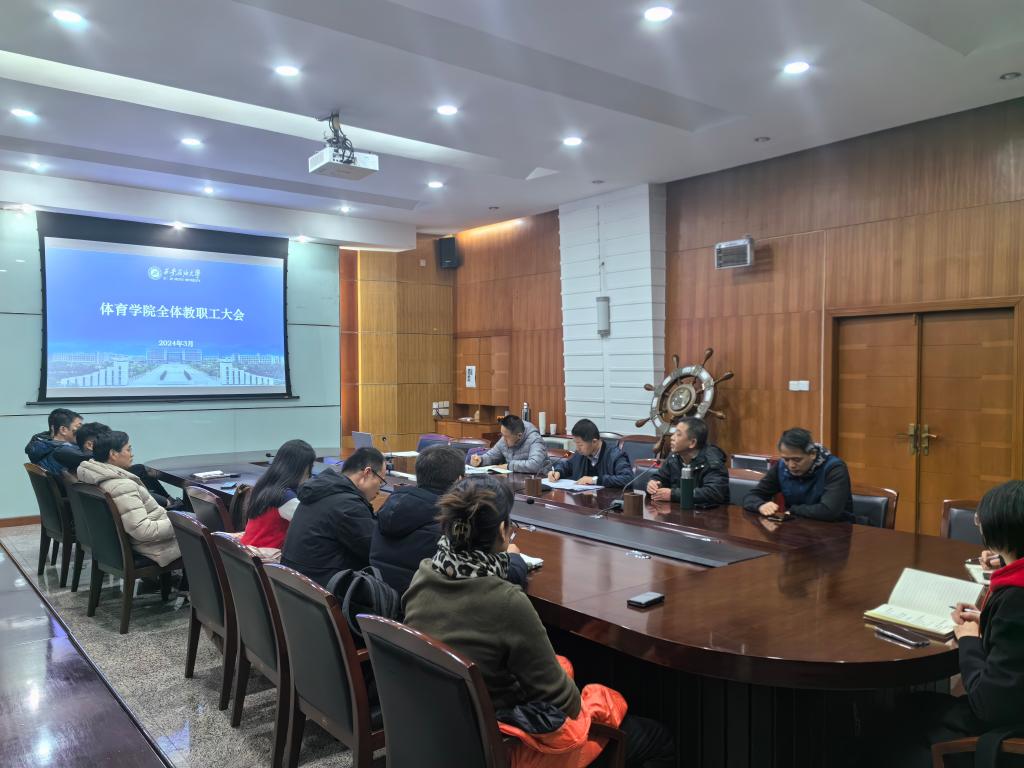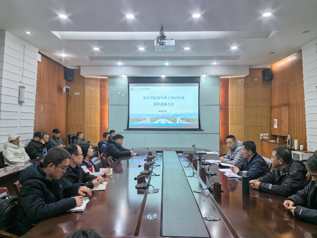 3月4日下午,體育學院在雁塔校區會議中心第四會議室召開領導班子2023年度述職述廉大會暨全院教職工大會。學院黨政領導及全體教職工參加會議。會議由學院黨總支書記茍毅飛主持。
