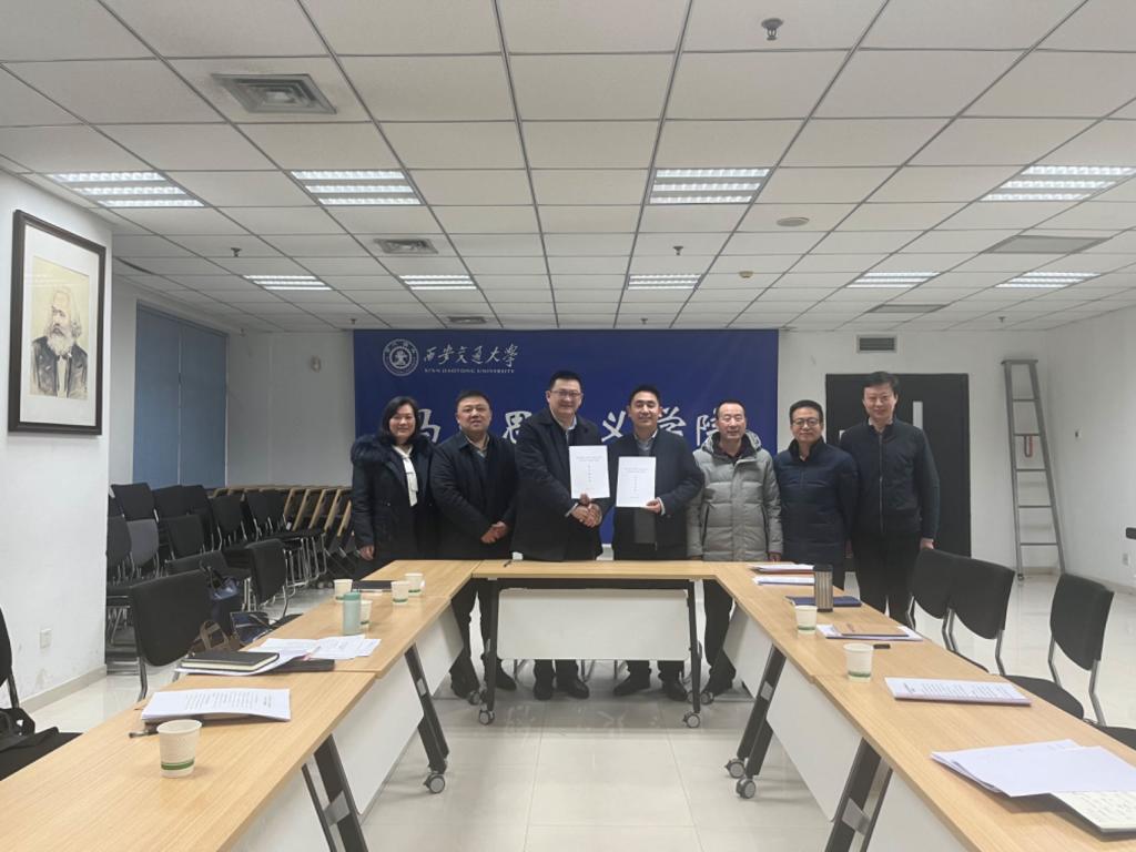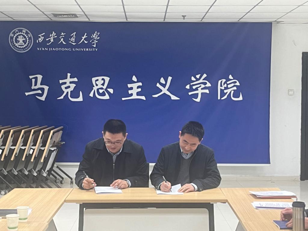 為全面貫徹習近平總書記關于思政課建設的重要論述,落實中共中央辦公廳印發的《關于加強新時代馬克思主義學院建設的意見》要求,發揮全國和省級重點馬克思主義學院示范帶動作用,根據《陜西省高校重點馬克思主義學院對口幫扶普通馬克思主義學院機制》(陜教工宣辦〔2021〕15 號)文件精神。3月1日下午,我校馬克思主義學院張海濤院長一行走訪西安交通大學馬克思主義學院,舉行西安交通大學馬克思主義學院對口幫扶我校馬克思主義學院簽約儀式,西安交通大學馬克思主義學院院長燕連福和我院院長張海濤代表雙方簽約。簽約儀式之前,雙方舉行了座談會。